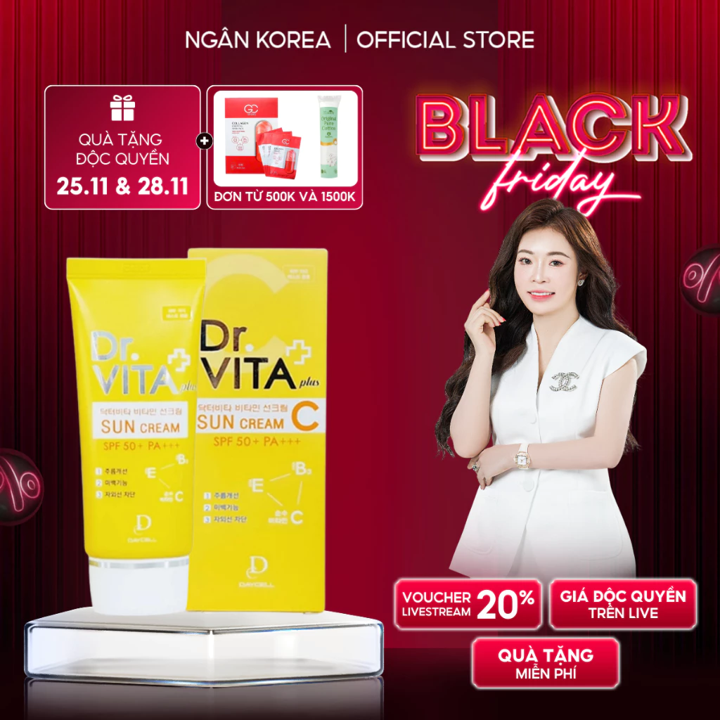 - Chỉ số SPF cao: Dr.Vita Sun Cream có chỉ số SPF 50+, đảm bảo khả năng bảo vệ da khỏi tia UVB trong thời gian dài.